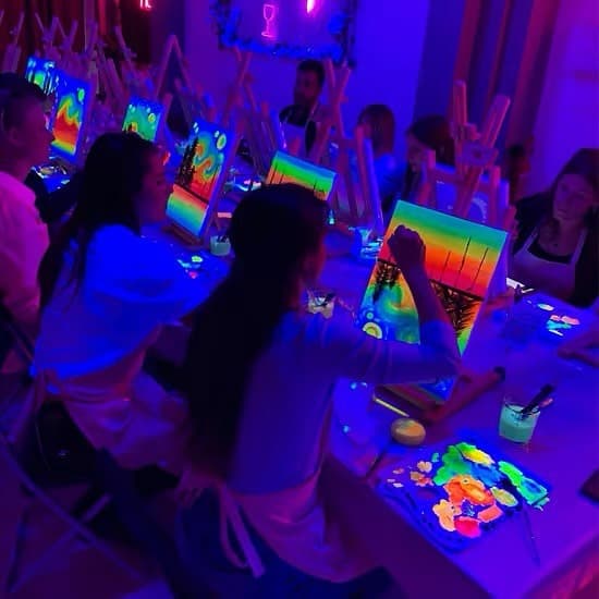 No primeiro ambiente cada criança terá uma tela com cavalete para pintar e deixar a imaginação correr solta com o uso de tinta acrílica neon, podendo levar de lembrança a tela para casa. Em outro ambiente, terá uma grande tela branca, onde as crianças poderão explorar a imaginação de forma livre e abstrata, apenas com o uso de tinta guache neon, onde a criatividade pode ir muito além dos pincéis. A oportunidade perfeita para se divertir e experimentar a arte da pintura na escuridão.