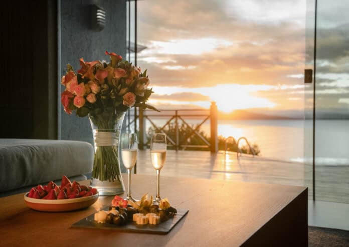 Ao chegarem ao bangalô, os casais serão recebidos com espumante, flores e uma irresistível seleção de frutas acompanhadas de ganache de chocolate belga. À noite, poderão desfrutar de um jantar em quatro tempos, servido no restaurante principal e cuidadosamente harmonizado com vinhos finos selecionados pelo sommelier do hotel.