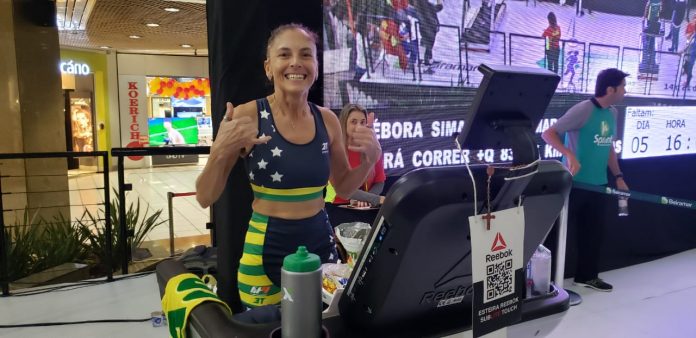 A ultramaratonista Débora Simas tenta quebrar o recorde mundial de corrida em esteira por sete dias. O desafio está acontecendo no vão central do Beiramar Shopping. Durante uma semana ela terá que percorrer mais de 833 quilômetros e 5 metros. O recorde atualmente é da britânica Sharon Gayter, que é de 2011.