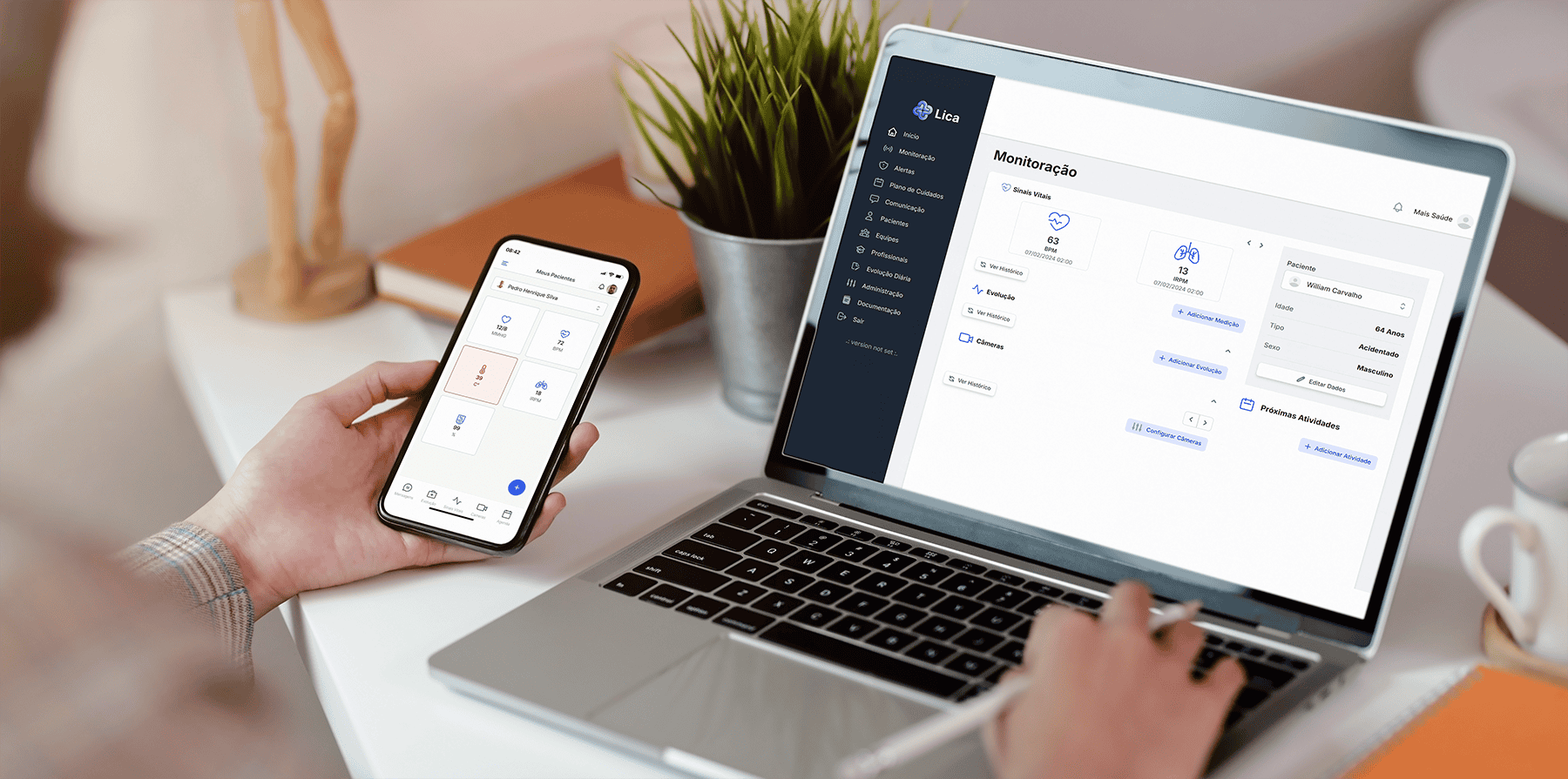 Através de funcionalidades avançadas que monitoram sinais vitais dos pacientes e notificam os cuidadores sobre a necessidade de apoio imediato, o LICA é integrável com dispositivos de monitoramento já existentes no mercado, como smartwatches, smartbands, câmeras e sleep analysers, que são colocados embaixo do colchão para monitoramento de batimentos cardíacos, frequência respiratória e emitem alertas aos cuidadores quando o paciente se levanta da cama. A plataforma realiza a coleta e análise dos dados continuamente, de forma automática e acessível.