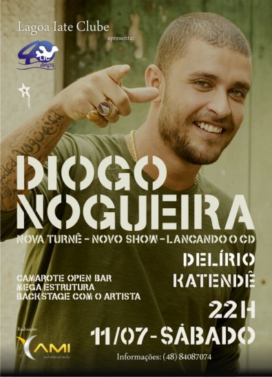 O sambista Diogo Nogueira lançará seu novo cd no dia 11/07 a patir das 22 horas em Florianópolis. O show acontece no LIC – Lagoa Iate Clube e faz parte da comemoração de 40 anos do clube.