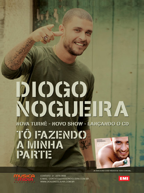 Diogo Nogueira tem 28 anos, é cantor e compositor e vem de uma nobre linhagem do samba. Filho do saudoso João Nogueira, acostumou-se desde cedo a ser embalado por choros e sambas. No final de 2005, participou do antológico show realizado no Theatro Municipal do Rio de Janeiro, comemorando 40 anos de carreira da cantora Beth Carvalho. Naquela noite, Diogo emocionou a platéia do Municipal ao interpretar “O Poder da Criação”.