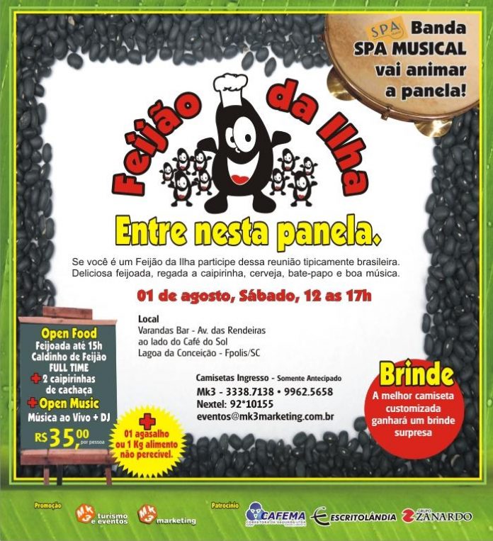 Feijões de plantão: vem aí a primeira edição do FEIJÃO DA ILHA, Feijoada entre Amigos promovida pela MK3 Marketing, Turismo e Eventos que recebeu carinhosamente este nome pois somos todos farinha do mesmo saco.