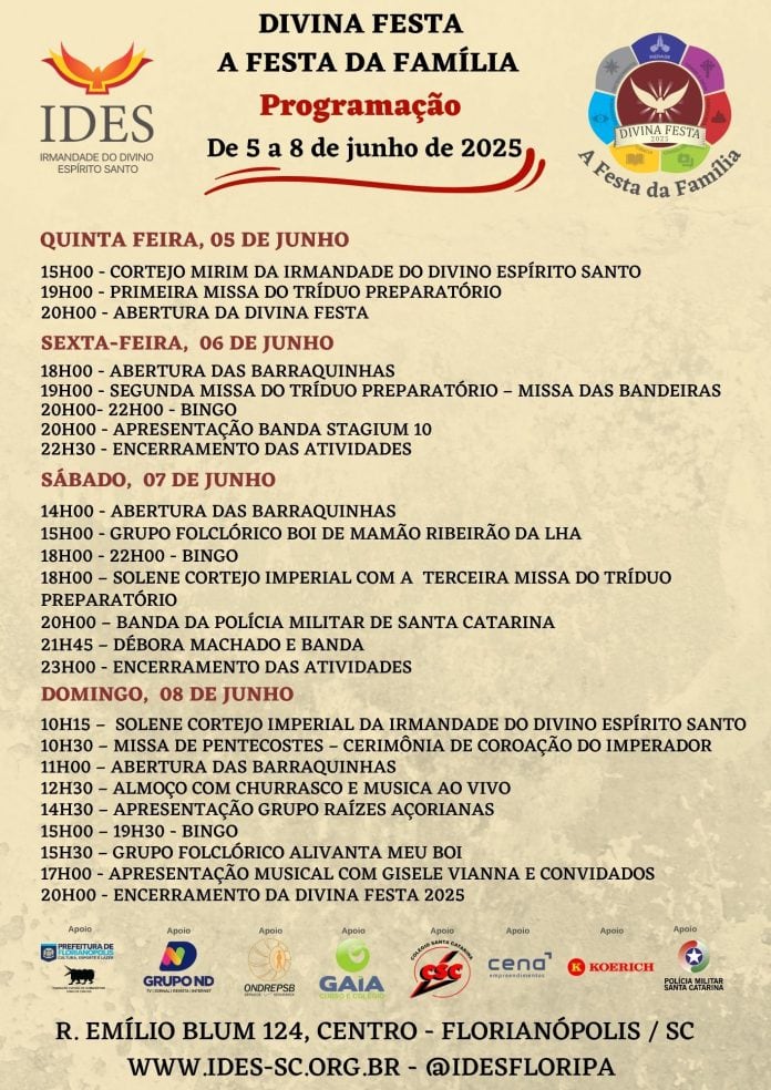 A Divina Festa é mais que um evento; é uma vivência da fé e da rica herança cultural açoriana. A IDES convida toda a comunidade florianopolitana e visitantes a participarem deste grande encontro, que fortalece laços e mantém viva uma das mais belas tradições da cidade.