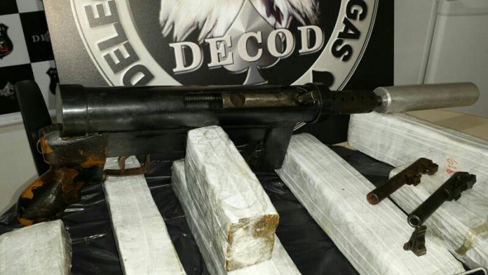 Uma submetralhadora calibre 9mm, cinco carregadores de pistola, dois carregadores de submetralhadora, cerca de 3,5 Kg de cocaína, 13 Kg de maconha, um silenciador, 200 munições de calibre .45, 290 munições de calibre 9 mm, 50 munições de calibre .22, 19 munições de espingarda calibre 12, cinco balanças de precisão e cadernos com anotações sobre o tráfico de drogas.