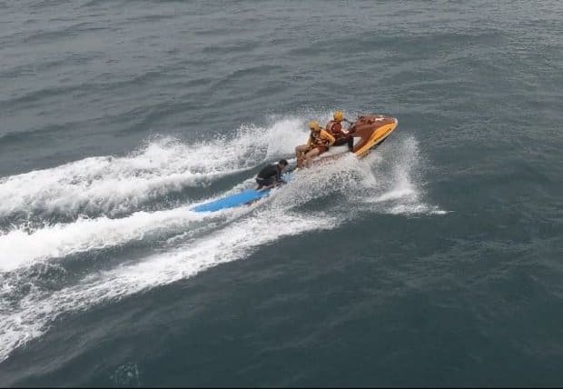 Com a exata localização do surfista, através das imagens do drone, um jet-ski foi então acionado na praia da Joaquina e o surfista rebocado até o posto de guarda-vidas na praia, onde recebeu um primeiro atendimento. Apesar da exaustão e de sintomas de hipotermia, ele estava bem e não precisou ser conduzido ao hospital.