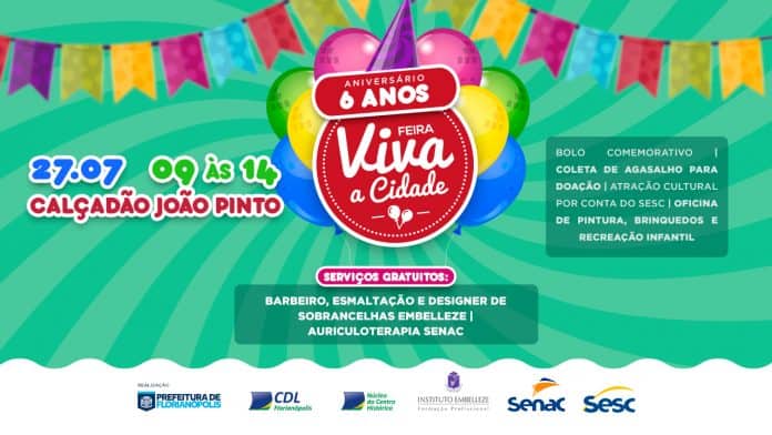 A Feira Semanal Permanente Viva a Cidade comemora seis anos de sucesso em Florianópolis neste sábado (27). Com isto, a feira realizada pela CDL de Florianópolis em parceria com a Prefeitura Municipal da Capital contará com uma programação especial de aniversário com atividades gratuitas e atrações diferenciadas para crianças e adultos aproveitarem o dia em família em torno do calçadão da João Pinto.