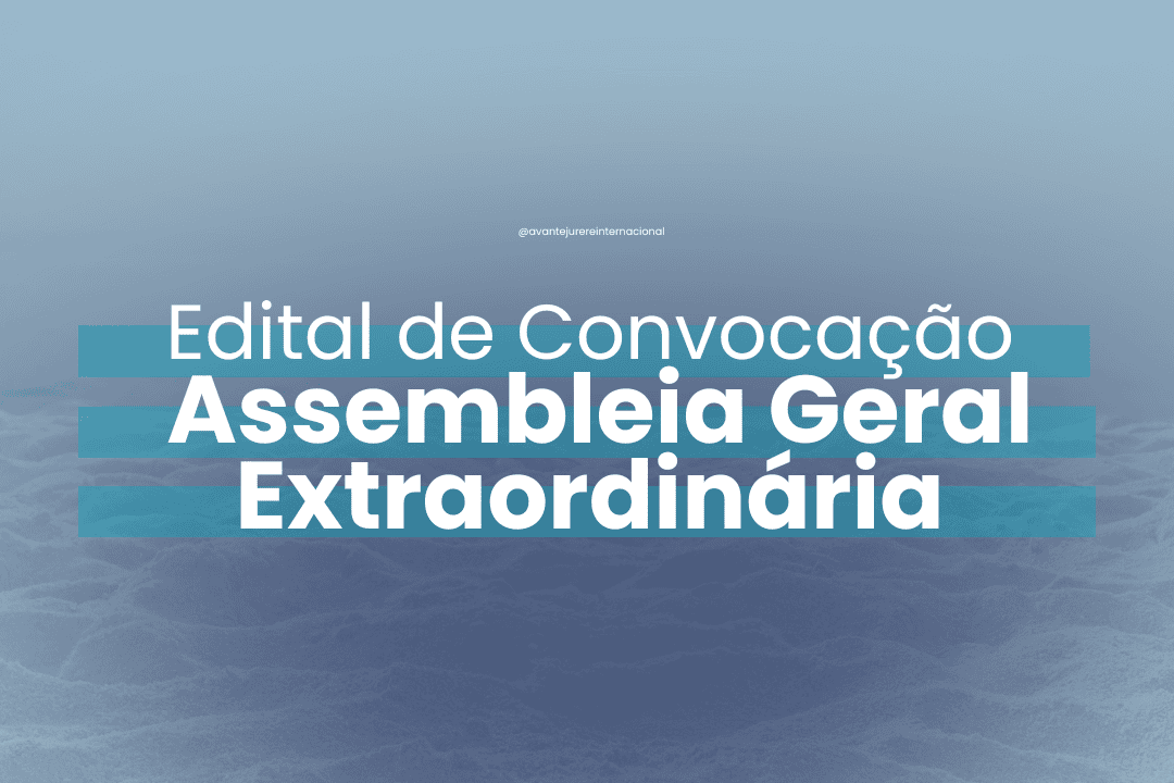 A ASSOCIAÇÃO DE PROPRIETÁRIOS, MORADORES E AMIGOS DE JURERÊ TRADICIONAL E JURERÊ INTERNACIONAL – “AVANTE JURERÊ INTERNACIONAL”, CONVOCA, por meio deste Edital, os associados para a Assembleia Geral Extraordinária, a ser realizada na modalidade presencial na Avenida das Raias, nº 261, Loja 1 – SC Imóveis, bairro Jurerê Internacional, Florianópolis/SC, Condomínio Jurerê Office, CEP 88053-400, no dia 26 de novembro de 2024, às 19 horas, em primeira convocação, com a presença da maioria absoluta dos votos, ou, em segunda convocação, às 20 horas, com a presença dos associados representando ao menos 1/3 (um terço) dos votos (art. 38 do Estatuto Social), para a deliberação da seguinte PAUTA: