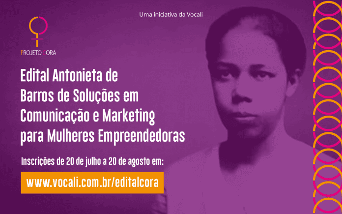 Conhecer e apoiar histórias e trajetórias de mulheres empreendedoras em todo o Brasil é um compromisso social da Vocali, agência de comunicação corporativa e inbound marketing que está à frente do Projeto Cora. O programa criado em 2018 atua com foco na divulgação e fortalecimento de negócios com lideranças femininas e já apoiou mais de 30 empreendedoras. Como mais uma ação do projeto, a agência idealizou o edital Antonieta de Barros de Soluções de Comunicação e Marketing para Mulheres Empreendedoras.