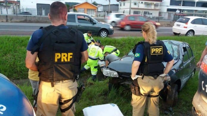 Na tarde deste domingo, policiais rodoviários federais atenderam a um acidente no qual a condutora e o marido estavam embriagados.