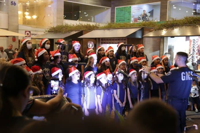 Evento contou com a chegada do Papai Noel e coral infantil