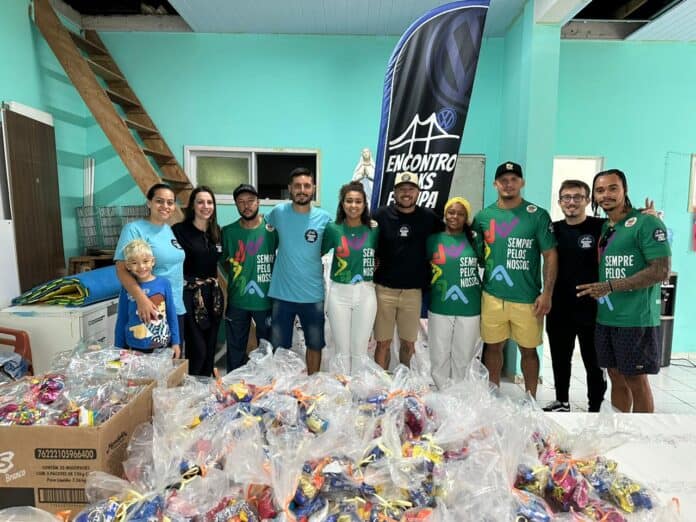 Nem o clima instável da última quinta-feira, 6, atrapalhou a 5ª edição do Encontro Volks Floripa – edição especial de Páscoa, realizado na Beira-Mar Continental. Com a ação, foi possível arrecadar mais de 1.400 bombons, entre barras de chocolates, caixas de chocolates e bis e pacotes de bombons. Os doces foram divididos em 300 kits para serem doados às crianças carentes.