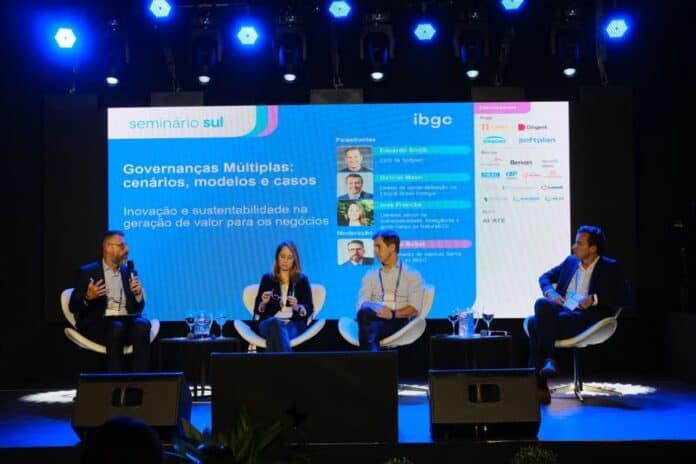 O Seminário Sul 2024, promovido nesta terça, 30 de abril, trouxe o tema “Governanças Múltiplas: cenários, modelos e casos”. O evento reuniu empresas de diversos setores da economia que têm desenvolvido diferentes abordagens de governança. O diretor Gabriel Mann participou do painel “Inovação e sustentabilidade na geração de valor para os negócios”, ao lado do CEO da Softplan, Eduardo Smith, e da gerente sênior de sustentabilidade, inteligência e governança da Natura &Co, Ines Francke. O coordenador do capítulo Santa Catarina do IBGC, Andriei Beber, moderou o debate.