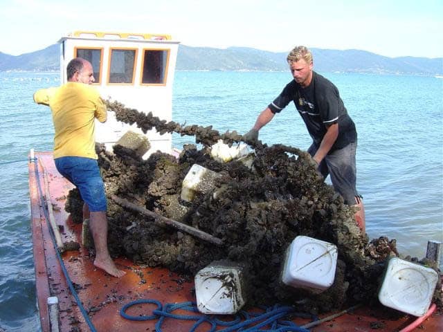 Moluscos bivalves, como o marisco, produzem fezes e pseudofezes que podem se acumular no fundo do mar e causar impactos ambientais (Foto: Aires Mariga / Epagri)