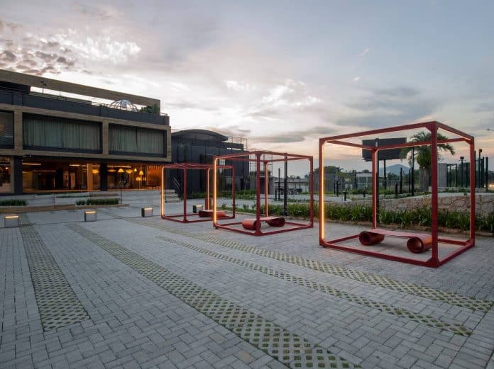 O grande diferencial desse ambiente são os cubos produzidos e os bancos “Toin oin oin”, assinados por Jaime Lerner, ao centro, convidam a todos a uma pausa para a reflexão individual.“Esses cubos são instalações que trazem uma analogia sobre o tempo em que vivemos dentro de nossas casas, isolados, mas mostrando o quanto ainda temos a viver, um atrativo para que os visitantes se sentem e tirem um tempo para reflexão”, pontua Ana.