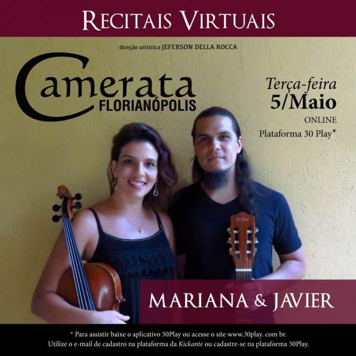 Apresentação dos músicos Mariana Barardi e Javier Venegas será nesta terça-feira (05), às 20h, na plataforma 30play.com.br