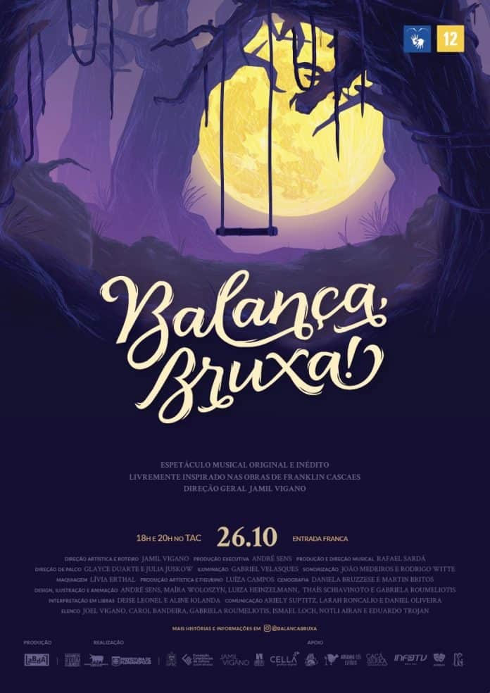 Espetáculo “BALANÇA, BRUXA!” Será exibido neste sábado (26) no TAC* _Um espetáculo musical original, inédito e gratuito livremente inspirado nas obras de Franklin Cascaes_Contemplado pelo Fundo Municipal de Cultura da Prefeitura de Florianópolis, o espetáculo musical “Balança, Bruxa!” apresenta uma história inédita e original, livremente inspirada nas obras de Franklin Cascaes e com uma linguagem que alude aos grandes épicos cinematográficos de fantasia, tais como Harry Potter e Senhor dos Anéis. Um novo olhar ao mundo fantástico criado pelo artista catarinense, assim como aos tradicionais elementos da cultura ilhéu, como o cerco das tainhas, a renda de bilro, o costume da benzedura e a festa do Divino Espírito Santo.