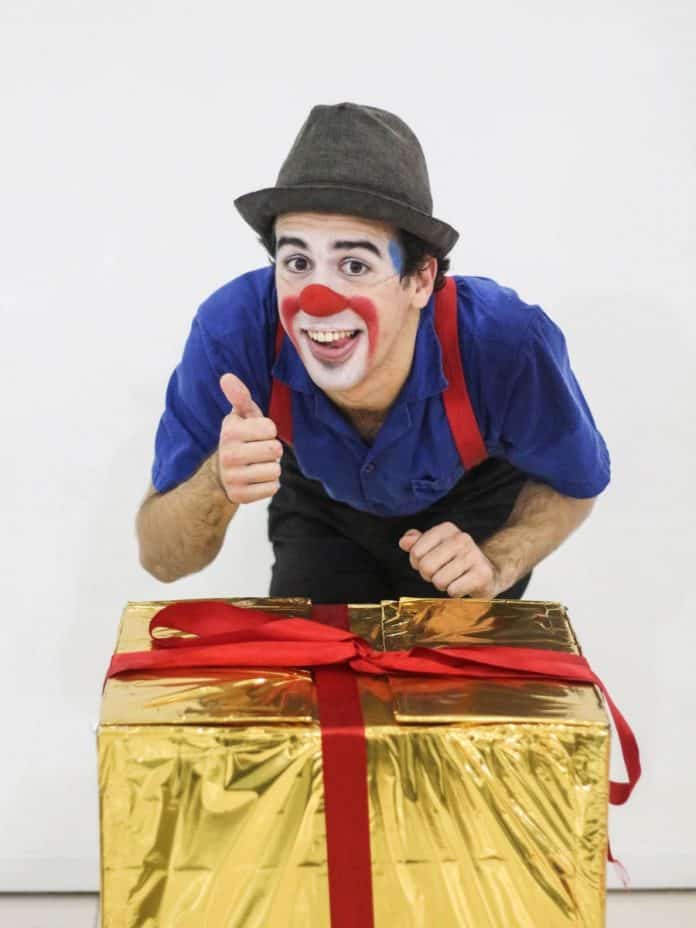 Nesta montagem, o Palhaço Billy, interpretado por Allan Ortega, recebe um lindo presente. O simples desembrulhar do pacote se revela uma surpresa: em meio à aparição inesperada de um convidado, são apresentados números de mágicas, malabarismo, equilibrismo, dança, música e inúmeras trapalhadas. Allan Ortega é palhaço e produtor formado pela Escola de Palhaços do Circo da Dona Bilica, onde também fez residência por um ano. Atua também no espetáculo Gran Circo, da Trupe Gran Circo, e faz parte do projeto (A)Gentes do Riso, realizado pela Traço Cia de Teatro.