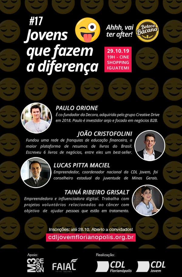De acordo com o coordenador-geral da CDL Jovem de Florianópolis, Thiago Jasper, o “Jovens que fazem a diferença” é o principal evento do ano para os empresários. “Compartilhar histórias de sucesso é o diferencial do encontro para inspirar e motivar novas lideranças”, comenta.