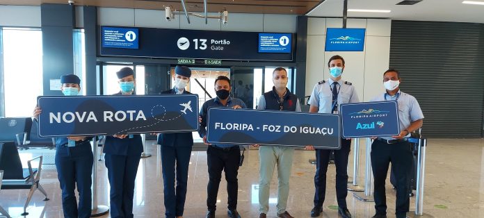 O primeiro voo que consolida a rota regular entre Florianópolis e Foz do Iguaçu, operada pela Azul Linhas Aéreas, aconteceu nesta sexta-feira (10), com pouso em Florianópolis às 15h25. A partir de agora, serão 3 opções de voos semanais que conectam dois dos destinos mais visitados do país. A programação inicial inclui frequências às segundas e sextas-feiras, com partida de Florianópolis às 12h e chegada em Foz do Iguaçu, às 13h20, além de mais uma opção no sábado, às 15h55, com chegada prevista às 17h15.