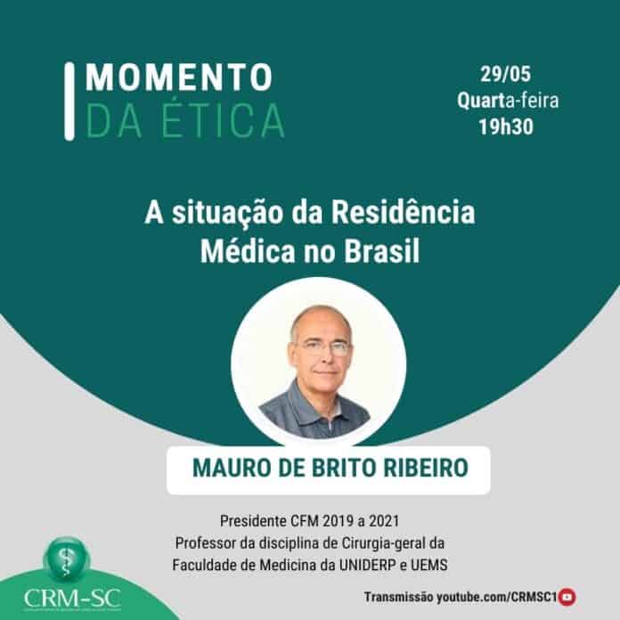 O Momento da Ética do Conselho Regional de Medicina de Santa Catarina (CRM-SC) debaterá “A situação da Residência Médica no Brasil”, na quarta-feira (29), às 19h, com transmissão on-line pelo canal do Youtube do CRM-SC,