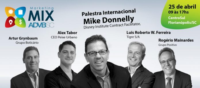 A primeira edição do Marketing Mix ADVB/SC, promovido pela Associação dos Dirigentes de Vendas e Marketing de Santa Catarina, trará pela primeira vez ao Estado Mike Donnelly, reconhecido especialista, palestrante, facilitador e consultor em técnicas de como construir culturas corporativas bem-sucedidas. Por mais de 25 anos, Mike ganhou experiência prática em liderança atuando na The Walt Disney Company e na Papa John's International.