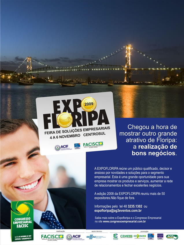 A Expofloripa 2009, feira de produtos e serviços organizada pela Associação Comercial e Industrial de Florianópolis (ACIF), acontece dentro da programação do Congresso Empresarial Catarinense, numa parceria da ACIF com a Federação das Associações Empresariais de Santa Catarina (Facisc).