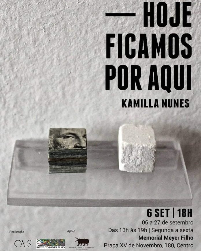 A inquietação sobre as relações entre o individual e o público no cenário atual brasileiro motivou a curadora e professora Kamilla Nunes a realizar a primeira exposição individual. “_Hoje ficamos por aqui” reunirá no Memorial Meyer Filho, em Florianópolis, obras em diferentes técnicas com o intuito de refletir sobre a história a partir de uma nova ótica. A abertura oficial ocorre nesta sexta-feira (06) e a visitação segue até o dia 27. A entrada é gratuita.