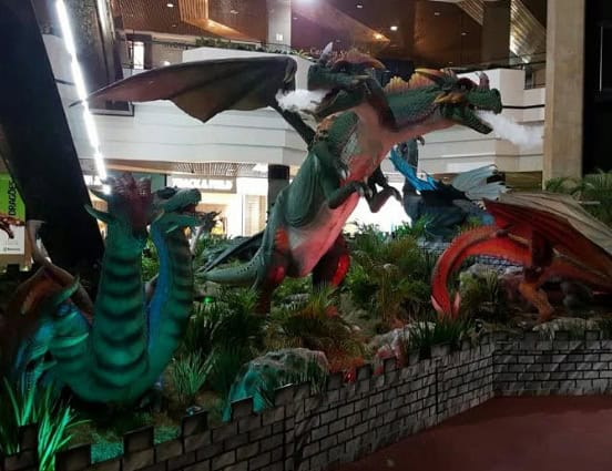 São dragões robotizados distribuídos pelo vão central, o maior deles medindo cinco metros de altura e oito de comprimento. Suas características fazem com que pareçam reais, pois eles emitem sons, contam com movimentos da cauda, asas, membros superiores e inferiores, sendo que alguns soltam fumaça pela boca. Além disso, na área externa do shopping um dragão interativo será instalado na esquina das ruas Bocaiúva e Mauro Ramos.