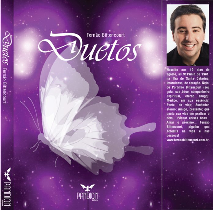 Os duetos – que dão título ao livro – nada mais são do que uma reflexão do autor com ele mesmo. “Fernão com seu guia, você consigo mesmo, você e a poesia”, divaga Fernão Bittencourt ao sintetizar a essência de Duetos.