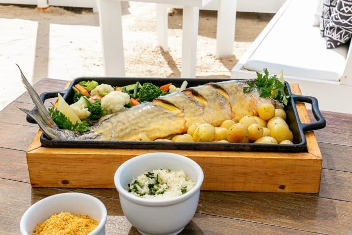 Para duas pessoas, por R$ 239,00, com entrada de ovas de tainha crocantes, a Tainha na Crosta de sal é servida com batata sauté, pirão de tainha, farofa de ovas, legumes na manteiga e arroz com brócolis. Também servindo duas pessoas e com entrada de ovas de tainha crocantes, por R$ 229,00, a tainha assada é inteira e recheada de farofa de ovas, acompanhando batata sauté, molho beurre blanc, legumes na manteiga e arroz com brócolis.