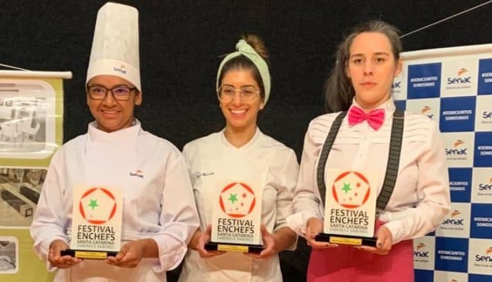 O Festival Enchefs 2022 já tem os seus vencedores em Santa Catarina. Três profissionais (duas chefs de cozinha e uma profissional de coquetelaria) foram escolhidos nesta segunda-feira (27), numa prova que teve como palco a cozinha da Faculdade Senac Florianópolis. Os selecionados irão participar da grande final do Prêmio Dólmã, o Oscar da gastronomia brasileira, que acontece em agosto em Macapá (AP).