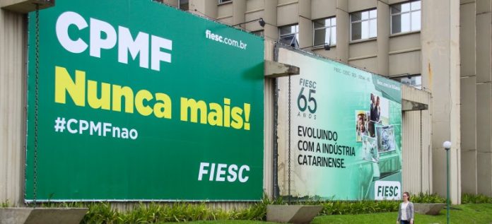 A Federação das Indústrias de Santa Catarina (FIESC) está distribuindo outdoors em suas 16 vice-presidências no Estado com a mensagem “CPMF Nunca Mais”. A iniciativa, que nesta segunda-feira, 30, também chega às redes sociais da entidade, rejeita qualquer tentativa de retorno da Contribuição Provisória sobre Movimentação Financeira (CPMF). O imposto foi extinto em 2007, mas o governo federal pretende recriar o tributo para ajudar a fechar as contas públicas. Na internet, a população pode participar usando a palavra-chave (hashtag) #CPMFnao.