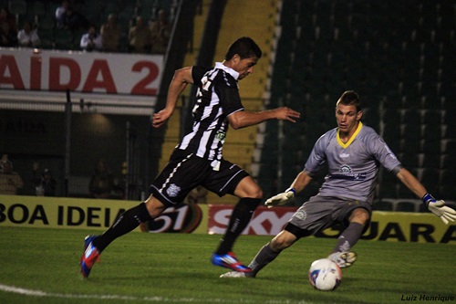 No primeiro tempo da partida,  partiu para cima e logo com sete minutos Tchô sofreu pênalti Rafael Costa cobrou e abriu o placar, marcando o seu décimo gol na temporada e se tornando o artilheiro da equipe na temporada. No decorrer da etapa inicial, o alvinegro continuava com o domínio do jogo e teve a sua melhor oportunidade de ampliar o placar em uma boa finalização de Ricardo Bueno. Porém, o alvinegro acabou sofrendo uma baixa ainda no primeiro tempo já que o zagueiro Douglas acabou torcendo o joelho logo com 10 minutos de jogo e precisou sair do jogo, com Guti entrando em seu lugar.