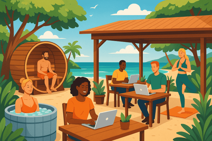 Impact Hub, HZ, SoHo, Sandbox e dezenas de cafés com 200 + Mbps sustentam a jornada remota. A oferta de esportes ao ar livre — surf, trilhas, kitesurf — e programas de bem-estar (ex.: sauna + ice bath na Founder Haus) reforçam o conceito de “empreendedorismo saudável”. E nesse contexto, a Founder Haus, em Jurerê Internacional, lidera esse movimento do empreendedorismo saúdel e o estímulo ao nomadismo digital na capital catarinense.
