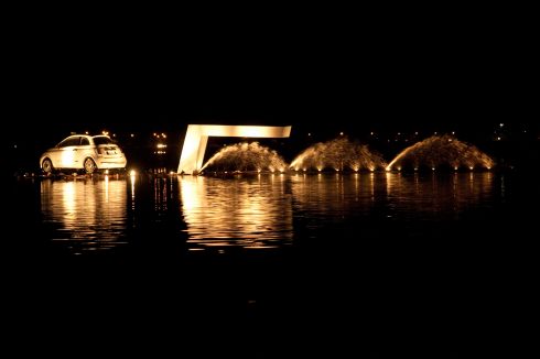 É um presente que ganha mais vivacidade à noite. Quem passar pela Lagoa da Conceição, poderá ver o carro todo iluminado. Além do carro, três arcos com chafarizes e luzes darão forma ao número 500 no meio da lagoa. Para preparar o presente à cidade. Esta ação foi aprovada por todas as autoridades necessárias. O projeto foi desenvolvido pela The Marketing Store.