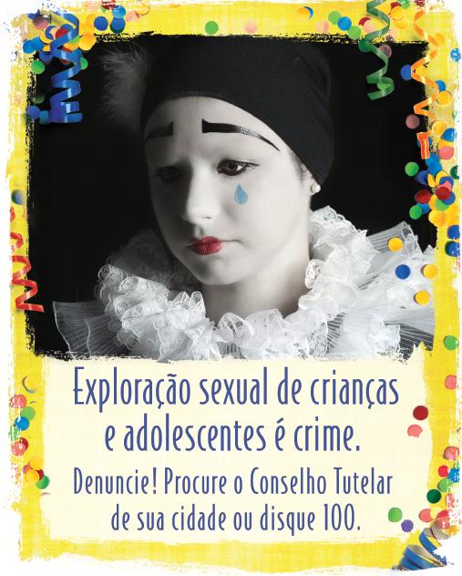 O lançamento da campanha para o Carnaval 2010 será realizado no Gabinete do Prefeito, às 16h, contando com a presença de representantes de entidades civis e governamentais que vão formar uma força-tarefa para atendimento a essa faixa etária. A campanha nacional tem como slogan “Exploração sexual de crianças e adolescentes é crime. Denuncie! Procure o Conselho Tutelar de sua cidade ou disque 100”. O material de divulgação traz a imagem de um pierrô com uma lágrima escorrendo no rosto.