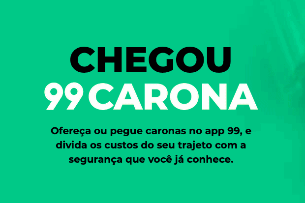 O 99Carona é a modalidade de corridas da 99 que conecta condutor e passageiro com origens e destinos semelhantes. Diferente das outras categorias intermediadas pela empresa, essa modalidade aproveita viagens rotineiras, trajetos que já seriam feitos pelos condutores, e conecta com usuários que estão indo na mesma direção. Além de tirar carros das ruas ao permitir o compartilhamento e colaborar com a melhoria da mobilidade, o 99Carona também possibilita a divisão de custos e o senso de comunidade.