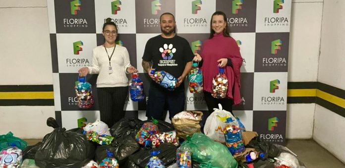 Só no ponto de coleta do Floripa Shopping, neste primeiro semestre, foram coletados mais de 124 kg de tampinhas plásticas para ser doado ao projeto Ecopet.