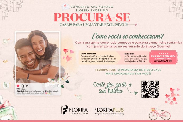 Para participar, os casais devem ser maiores de 18 anos, estar cadastrados no Floripa Plus, seguir o perfil do @floripashopping no Instagram, curtir o post oficial da ação, comentar com a história de como se conheceram, deixar o perfil aberto para análise e ter disponibilidade para comparecer ao jantar na data e horário definidos. Os vencedores serão anunciados no dia 10 de junho, às 18h30, nas redes sociais do empreendimento.