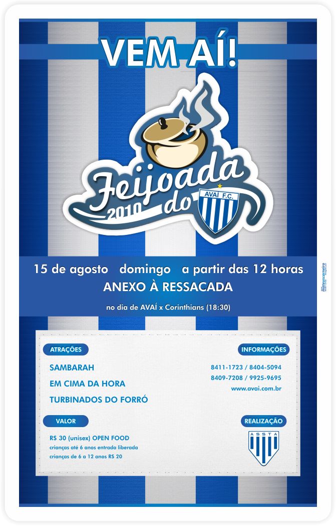 A ASSTA (Associação Social e Cultural do Avaí) está divulgando a realização da edição 2010 da Feijoada do Avaí.