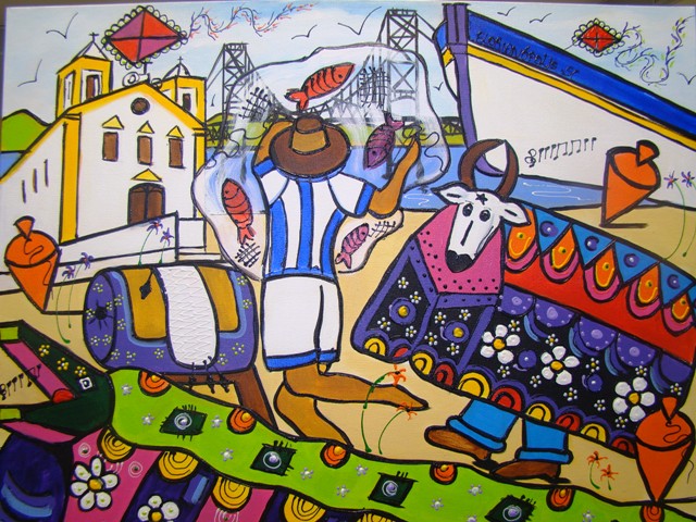 Quadros, peças de barro, cerâmica e papel machê materializam os personagens da cultura açoriana e contam a história da Ilha da Magia. Além da mostra e de oficinas, que ensinam a criar os objetos em exposição, a artista plástica Janete Virissimo está pintando ao vivo no shopping