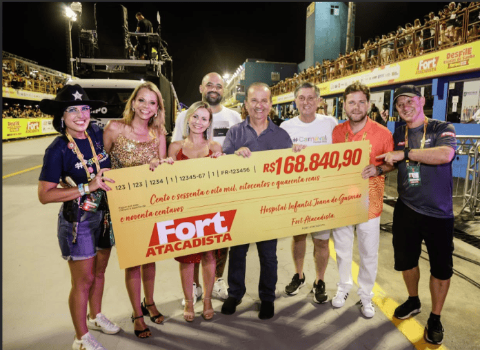 Pelo segundo ano consecutivo, o Fort Atacadista realizou uma importante ação de solidariedade durante o Carnaval de Florianópolis, doando 100% dos valores arrecadados com a venda de ingressos das arquibancadas da Passarela Nego Quirido para o Hospital Infantil Joana de Gusmão – uma grande referência em tratamento oncológico para toda Santa Catarina. Neste ano, o valor doado foi de R$168.840,90, e a entrega do cheque ocorreu no intervalo dos Desfiles das Escolas de Samba, na Passarela Nego Quirido, nesta sexta-feira, dia 28 de fevereiro.