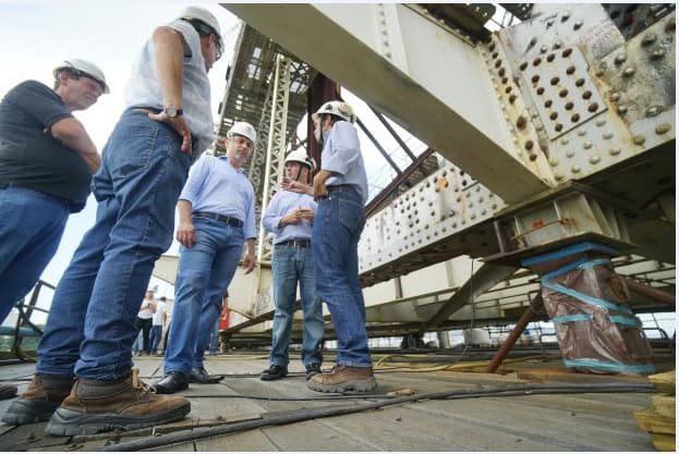 Acompanhado do secretário de Estado da Infraestrutura, Carlos Hassler, o governador Carlos Moisés realizou nesta terça-feira, 29, a sua primeira visita às obras de restauração da ponte Hercílio Luz, em Florianópolis. Antes de caminhar pelos andaimes, Moisés participou de uma reunião com engenheiros da empresa portuguesa Teixeira Duarte, responsável pelos trabalhos, e também com Wenceslau Diotallevy, engenheiro do Deinfra e fiscal encarregado pela reforma.