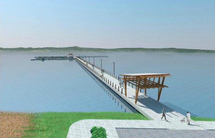 O trapiche de concreto terá 250 metros de comprimento, em forma de T, protegido de ressacas cíclicas, um sistema de “fence” atenuando as ondas sem impactar o leito do mar (longarinas verticais), pontões flutuantes para os barcos de pesca e lado direito para expansão de vagas e barcos de passagem.