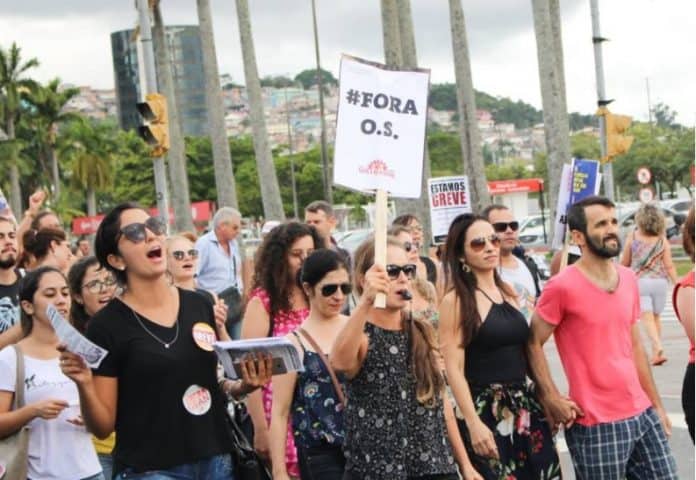 Os servidores municipais de Florianópolis seguem com a greve iniciada na última quarta-feira, 11. O sindicato que representa a categoria (Sintrasem) garante que a paralisação prosseguirá até que o prefeito Gean Loureiro desista do projeto de fechar parceria com Organizações Sociais para abrir creches que estão sendo construidas na Capital e também fazer a gestão da UPA do Continente.