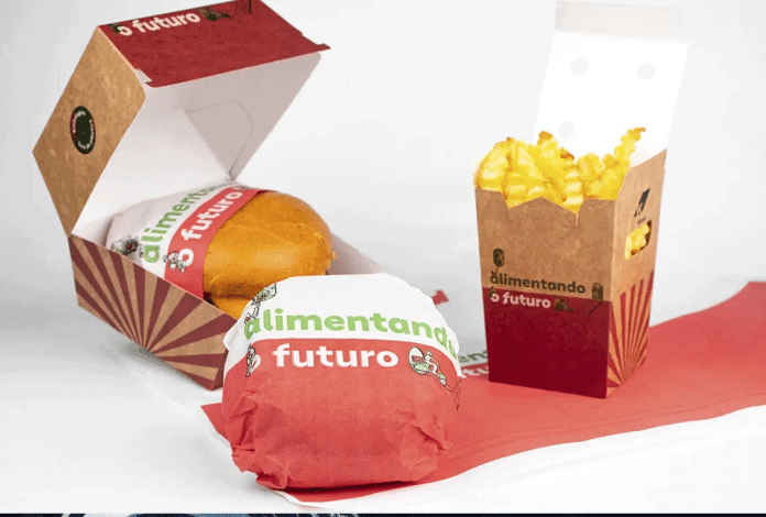 Embalagens biodegradáveis desenvolvidas pelo iFood em parceria com a Klabin para o projeto “Hambúrguer no Papel”. Foto: divulgação.