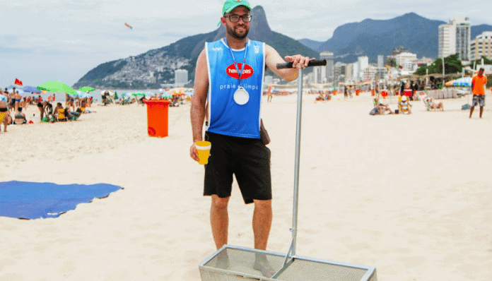 Na foto, Diego Saldanha (@ecobarreiradiegosaldanha), na edição de janeiro, realizada na Praia de Ipanema (RJ). O ativista e influenciador é parceiro do projeto Havaianas Praia+Limpa e participará de todas as edições de 2023. Foto Lucas Biaque.