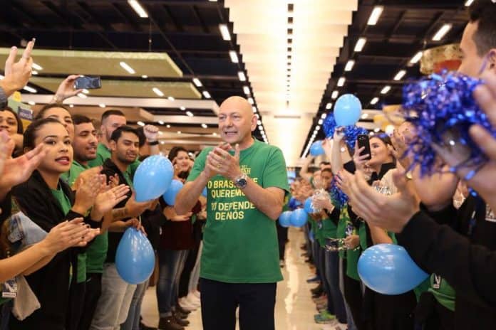 Para a inauguração da loja de Biguaçu, o dono da rede de lojas, Luciano Hang, convidou jornalistas para apresentar o novo espaço antes de abri-lo aos clientes.
