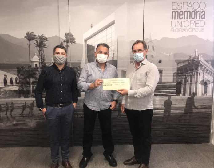 O Hemosc e o Cepon receberam, neste mês de janeiro, uma importante colaboração da Unicred Valor Capital, cooperativa de crédito com sede em Florianópolis. O valor de R$ 9 mil foi repassado para o superintendente da Fahece – Fundação de Apoio ao Hemosc/Cepon, Dr. Guilherme Genovez, pelas mãos do presidente da Unicred, Dr. Carlos Gilberto Crippa, e o diretor executivo da cooperativa, Rodrigo Machado.